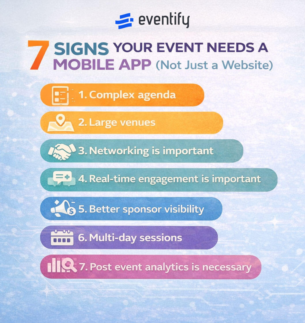 If you are experiencing any of these 7 signs, it's time to take your event to the next level with a mobile app. And what better way to make your event stand out with a personalised and engaged experience than the Eventify mobile app? Download the Eventify app today and unlock the full potential of your events. Start by exploring the platform here.
