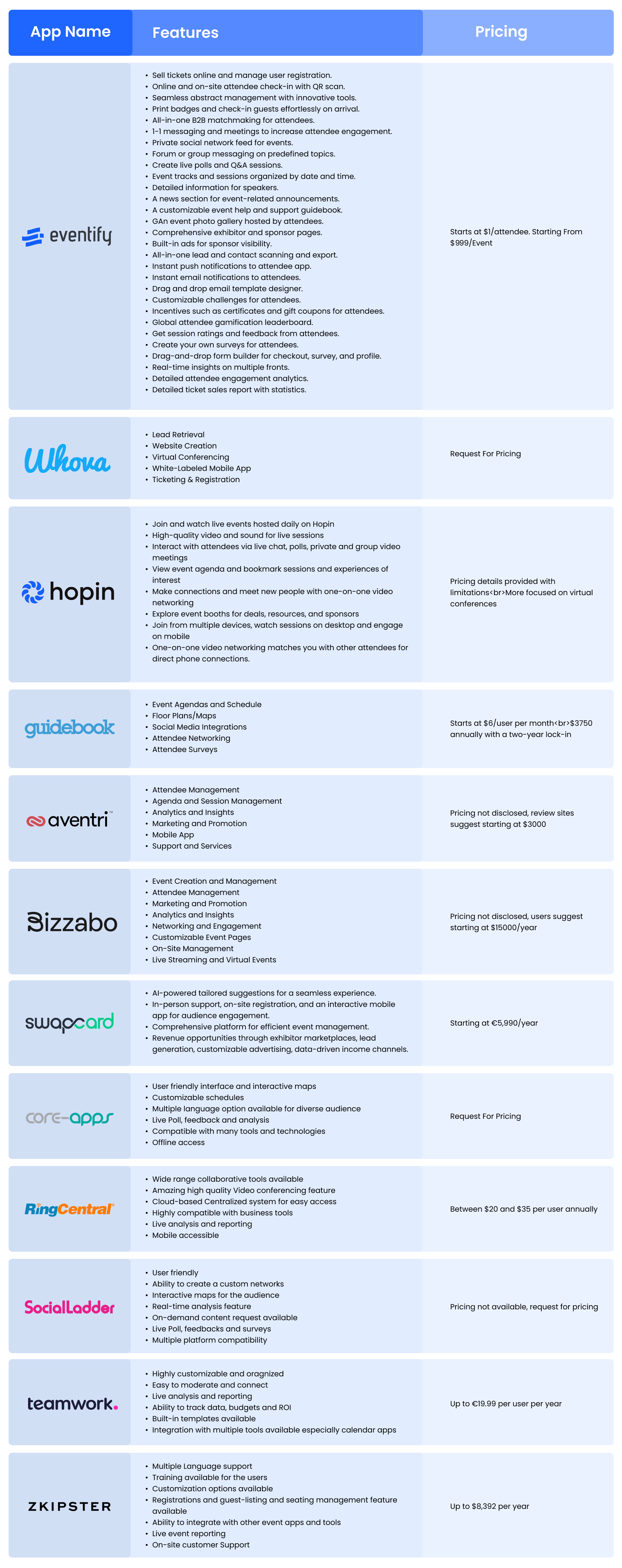 In this article, we’re diving deep into events and conference apps, with a focus on the top ones that suit both common and unique needs of event management teams.