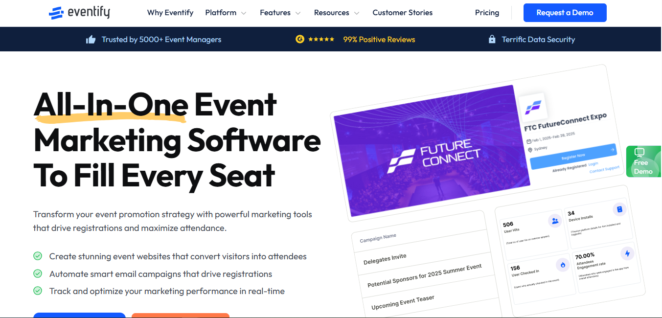 - Ease of Use and Power: Eventify combines intuitive UX with enterprise-level capabilities, requiring no technical expertise or training.