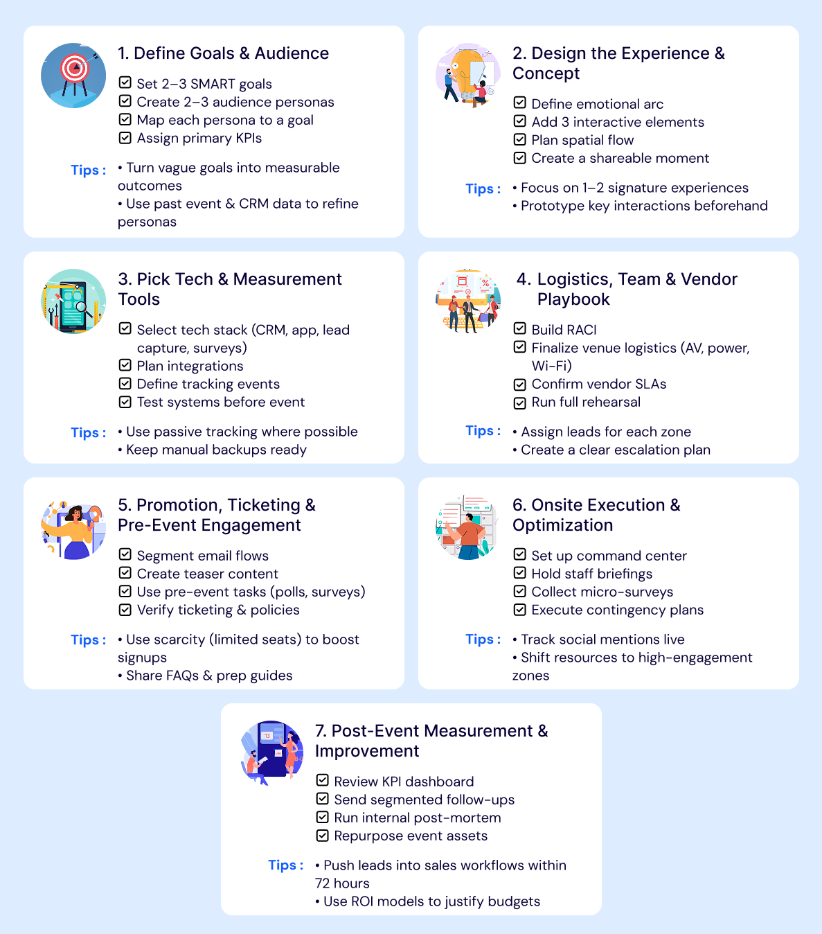 The event lifecycle ends with analysis and follow-up. Post-event, deliver reports mapping outcomes to original goals and feed those insights back into future planning. These closed-loop follow-ups help convert engagement into business value.