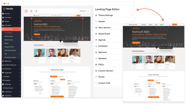 - Simplified Event Setup: You can quickly set up your event with intuitive tools to create agendas, sessions, and tickets. Everything is accessible on one platform, saving you time.