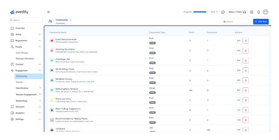 Solution: Choose a platform that offers intuitive networking features such as Eventify. Actively encourage attendees to connect by scheduling mandatory breakout sessions. You can match people using AI-powered matchmaking for themed discussions.