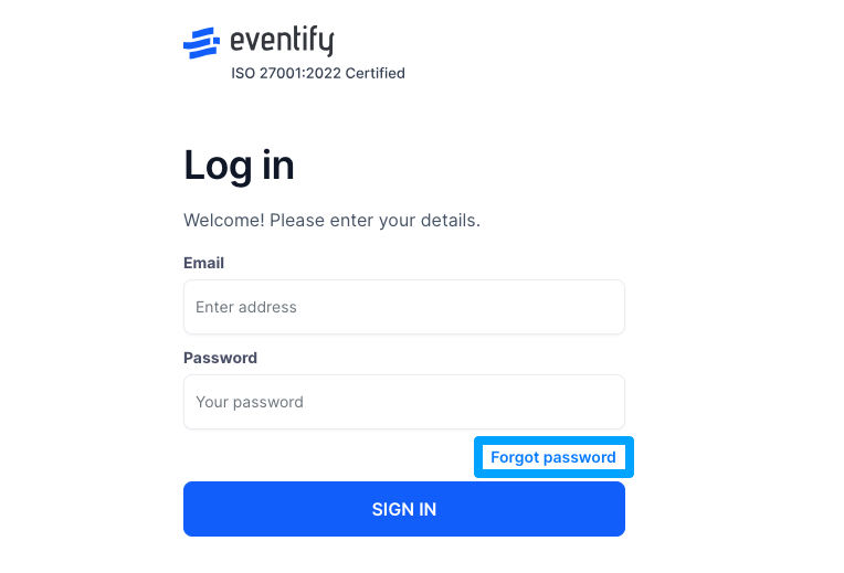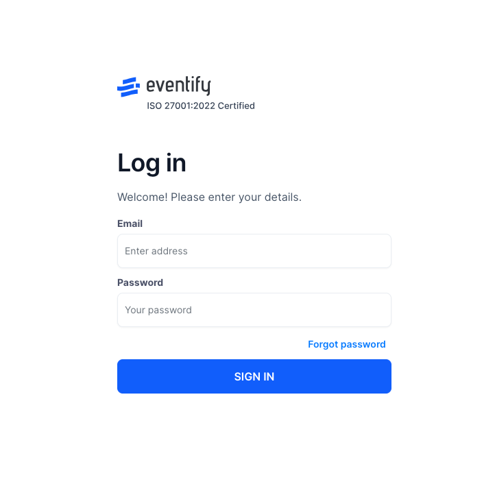 Should you encounter difficulties logging in, such as forgotten email or password, or if you receive error messages regarding account validity expiration, please don't hesitate to contact us at hello@eventify.com.